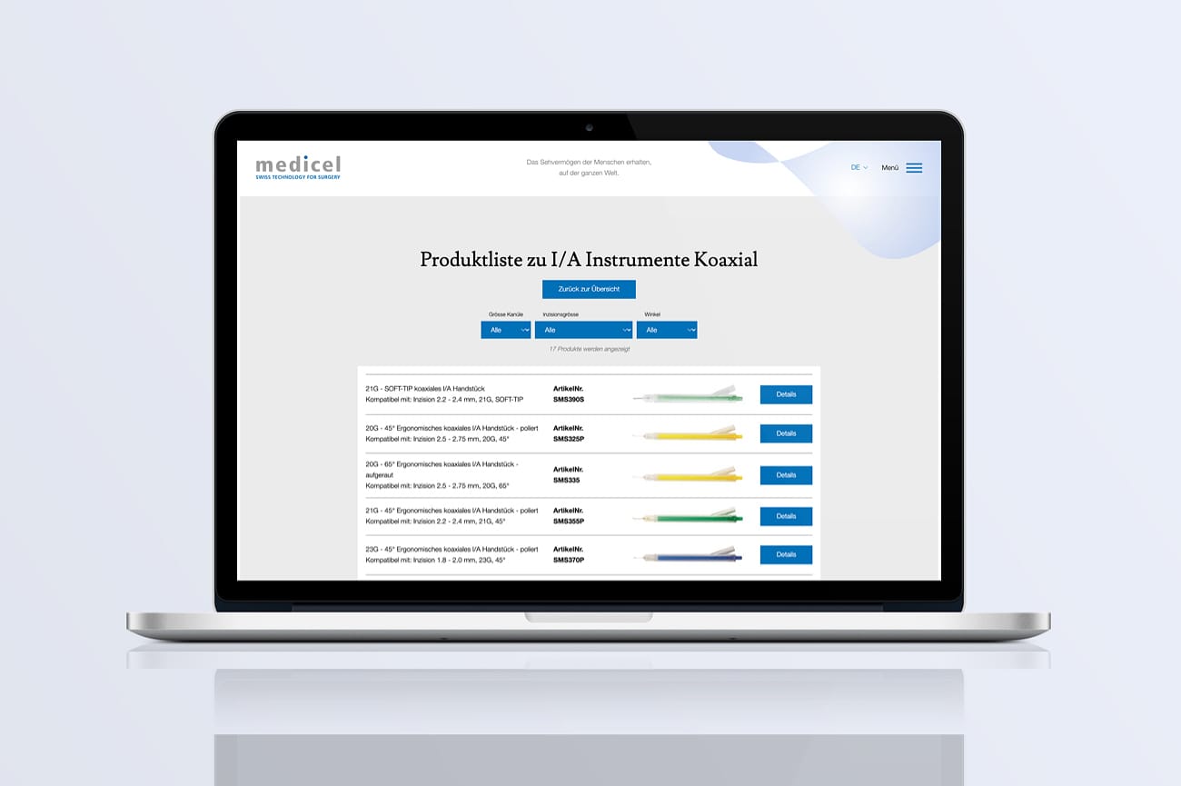Bei der Konzeption dieser Website stand neben der intuitiven Benutzerführung die Integration eines mehrstufigen Produktfilters im Mittelpunkt. Der Besucher soll mit wenigen Klicks zum Produkte seiner Wahl geführt werden. Diese Lösung ist nicht nur für den Kunden äusserst komfortabel, sondern reduziert auch den Beratungsaufwand des Verkaufsinnendienstes.